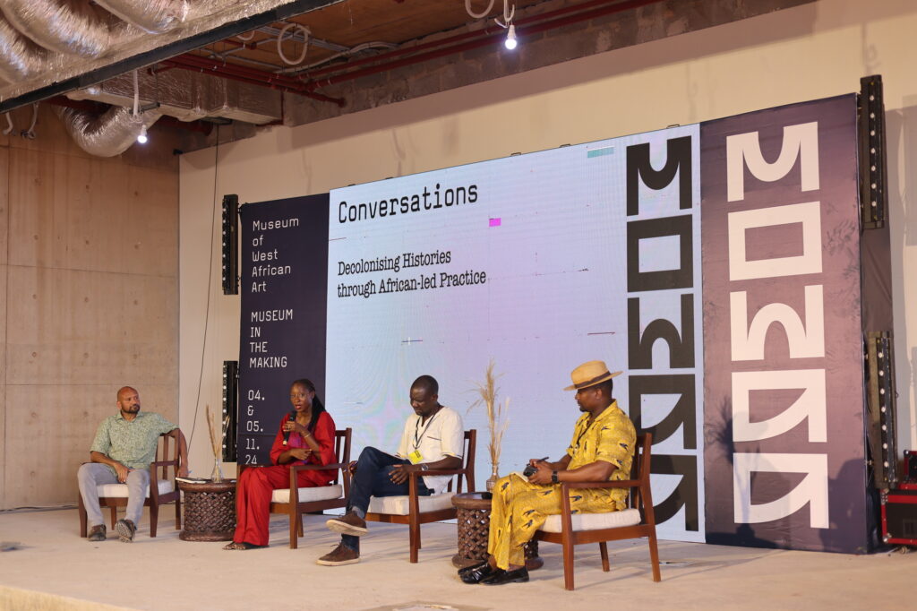 Panellists Professor Shadreck Chirikure (Oxford University), Tunde Morakinyo (Africa Nature Investors), and Wale Lawal (The Republic) reflected on the power of reinterpreting history through contemporary lenses, moderated by MOWAA Institute Director Ore Disu.